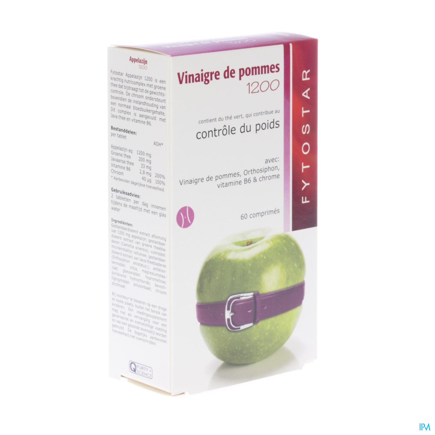 Vous pouvez commander 'Fytostar Vinaigre Pomme New Tabl 60' de la marque 'Fytostar' en Belgique auprès de PixelPharma via la catégorie suivante: