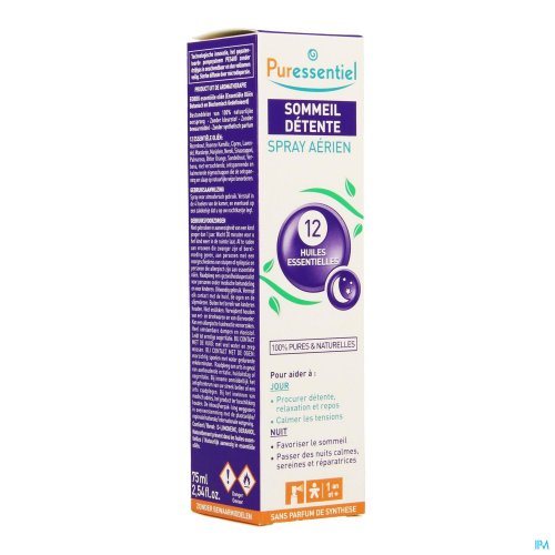 Vous pouvez commander 'Puressentiel Sommeil Detente Spray 12 Hle Ess 75ml' de la marque 'Puressentiel' en Belgique auprès de PixelPharma via la catégorie suivante: