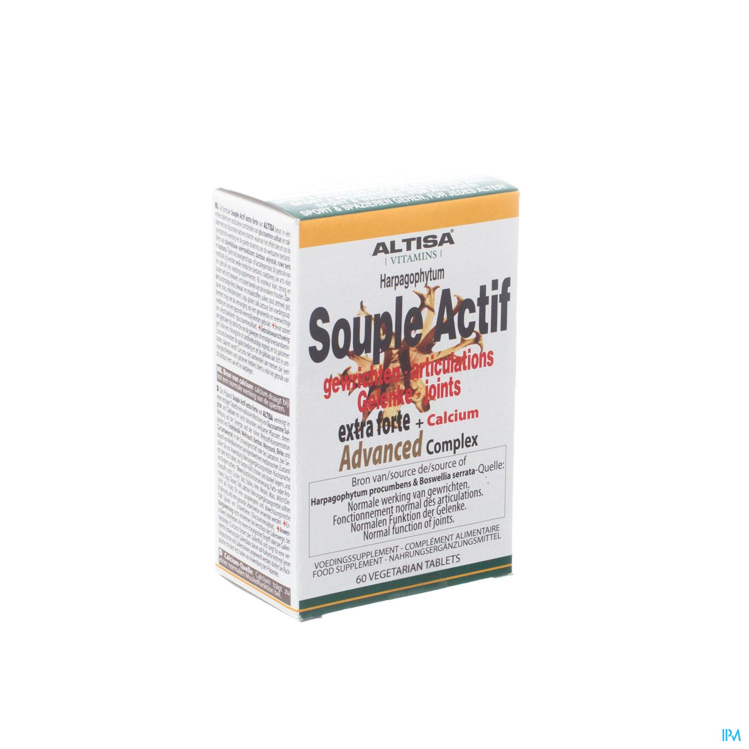 Vous pouvez commander 'Altisa Souple Actif Harpago Complex Tabl 60' en Belgique auprès de PixelPharma via la catégorie suivante: