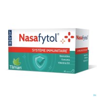 Agent de charge: cellulose microcristalline; extrait sec d'andrographis (Andrographis paniculata), poudre de jus atomisé d'acérola (Malpighia punicifolia L.), extrait sec de propolis, extrait sec d'éleuthérocoque (Eleutherococcus senticosus), acétate de D-alpha-tocophérol, levure séléniée, citrate de zinc, maltodextrine; antiagglomérants: stéarate de magnésium, dioxyde de silice; agents d'enrobage: hydroxypropylmethylcellulose, hydroxypropylcellulose, dextrine, lécithine de soja, carboxyméthylcellulose sodique; colorant: rouge de betterave; arôme: huile essentielle d'eucalyptus officinal (Eucalyptus radiata).