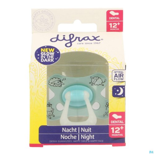 Je kan 'Difrax Fopspeen Dental +12 Nacht' van het merk 'Difrax' bestellen in België bij PixelPharma via de volgende categorie: