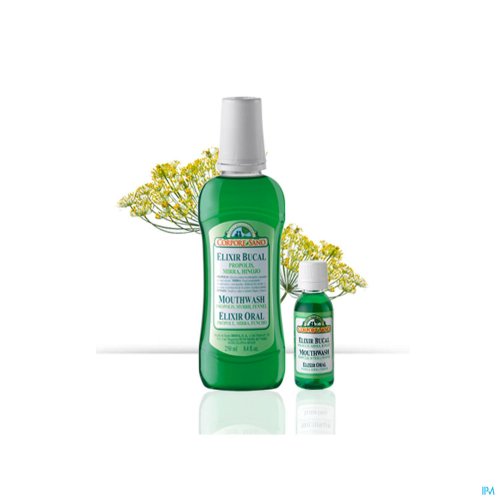 Samenstelling: mondwater met Venkel, Mirre, Propolis, alcohol denat. hydrogenated castor oil, aroma, benzoëzuur, saccharinezuur, sodium zout van Methyl, Ethyl, Propylparabenen, Menthol, citric acid.
