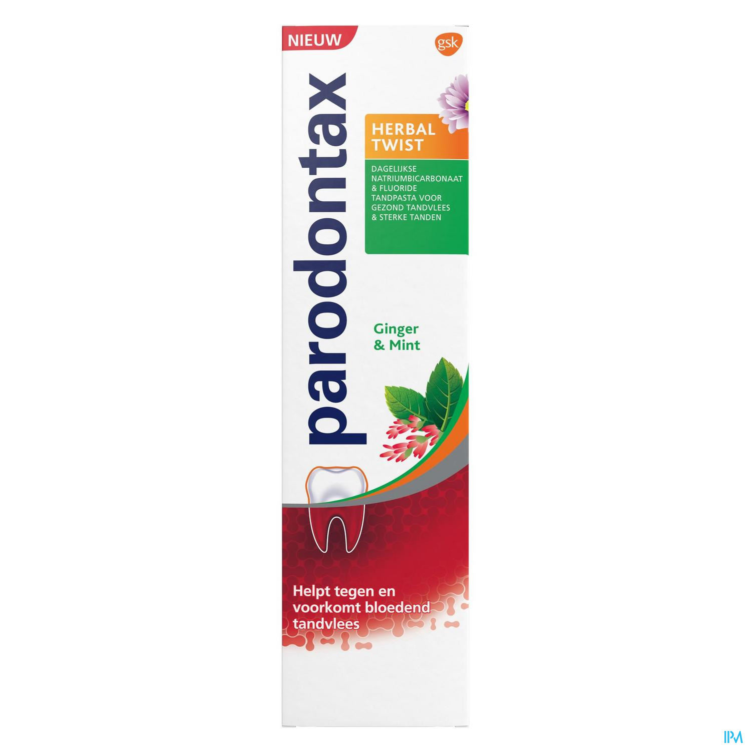 Parodontax is speciaal ontwikkeld om tandplak te verwijderen. Het werkt doordat het de opbouw van tandplak tegengaat. Parodontax is 4x effectiever in het verwijderen van tandplak dan gewone tandpasta*. Parodontax Herbal Twist heeft een unieke smaak-combinatie van gember extract en mint voor een schone, frisse en kruidige sensatie.Het is klinisch bewezen dat dagelijks poetsen met Parodontax helpt tegen bloedend tandvlees en tandvlees problemen voorkomt. Om bloedend tandvlees te helpen stoppen en voorkomen, gebruik trouw 2x daags. Parodontax heeft een unieke formule en smaak Na 14 dagen Parodontax te hebben gebruikt, vinden de meeste mensen de unieke smaak lekker. * bij 2x per dag poetsen, na 6 maanden gebruik