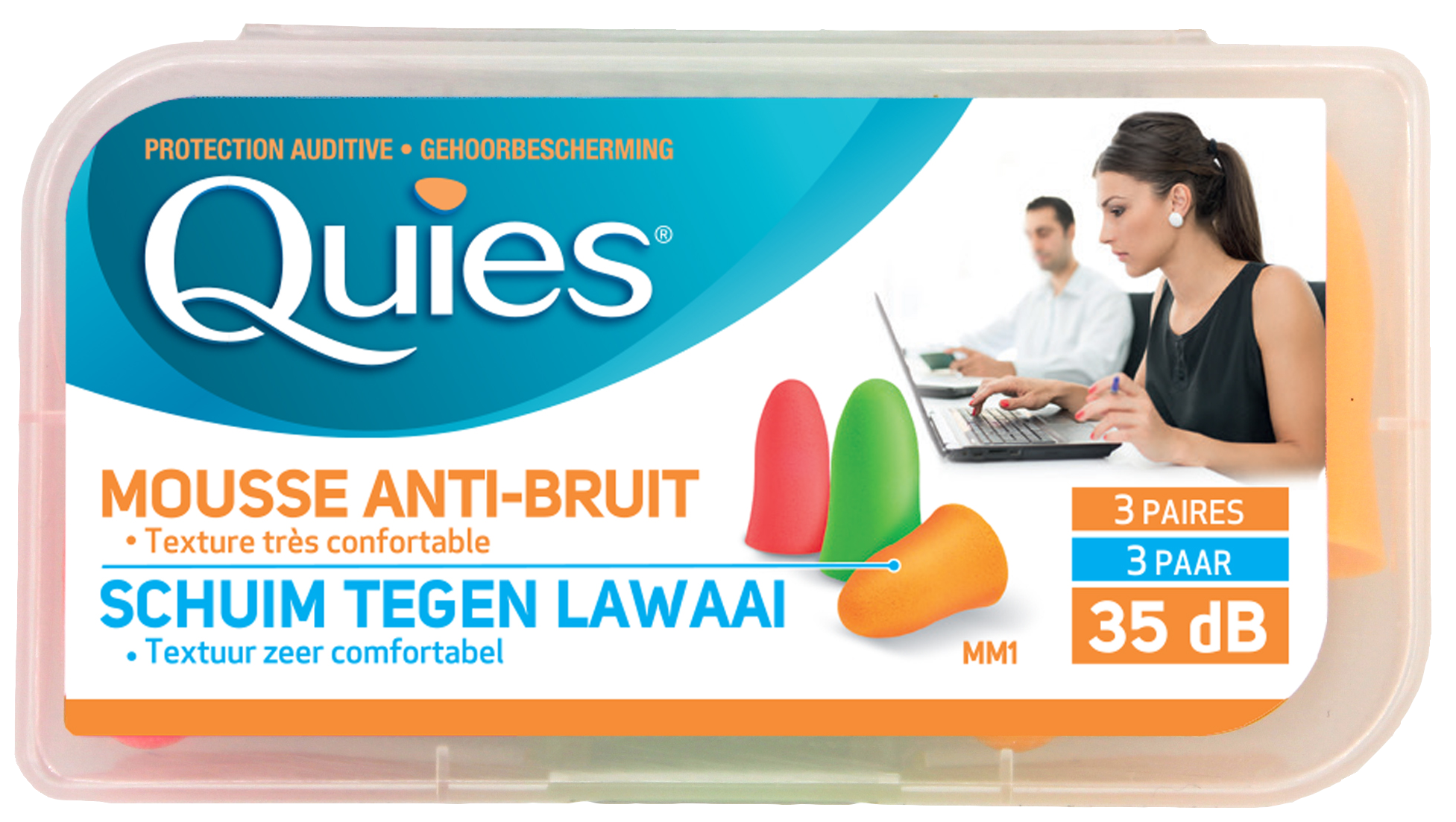 De schuimrubberen gehoorbeschermers van Quies verminderen luide geluiden met gemiddeld 35 dB, zonder u af te sluiten van uw omgeving. Ze zijn verkrijgbaar in 3 kleuren: fluorescerend, disco of neutraal.