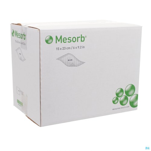 Mesorb is een zacht en sterk absorberend verband dat grote hoeveelheden exsudaat kan vasthouden. De vloeistofafstotende ruglaag voorkomt externe contaminatie van de wond en beschermt kleren en beddengoed tegen lekkages.