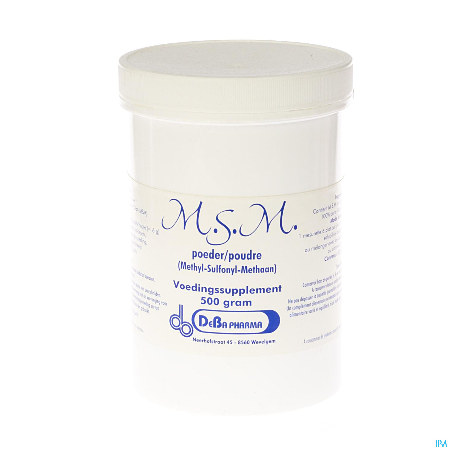 Je kan 'Msm Poeder Oplosbaar 500g Deba' van het merk 'Debapharma' bestellen in België bij PixelPharma via de volgende categorie: