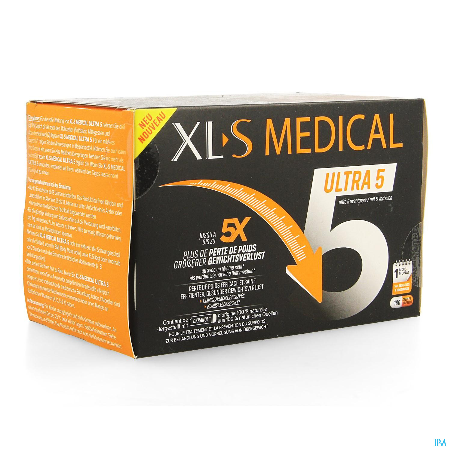 XL-S Medical Ultra 5, vetbinder met een actief bestanddeel van natuurlijke oorsprong Okranol™, hulpmiddel bij afvallen: verlies tot 5x meer gewicht dan met een dieet alleen* en bereik de eerste resultaten na 1 maand.